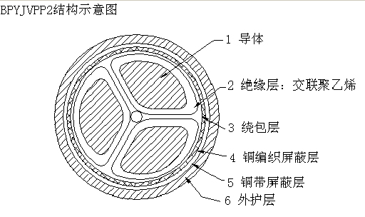 BPYJVPP2 | 交联聚乙烯绝缘聚氯乙烯护套铜丝编织铜带绕包屏蔽变频电力电缆。 |